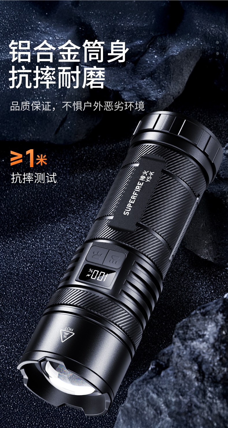 8、铝合金筒身,防水耐摔。