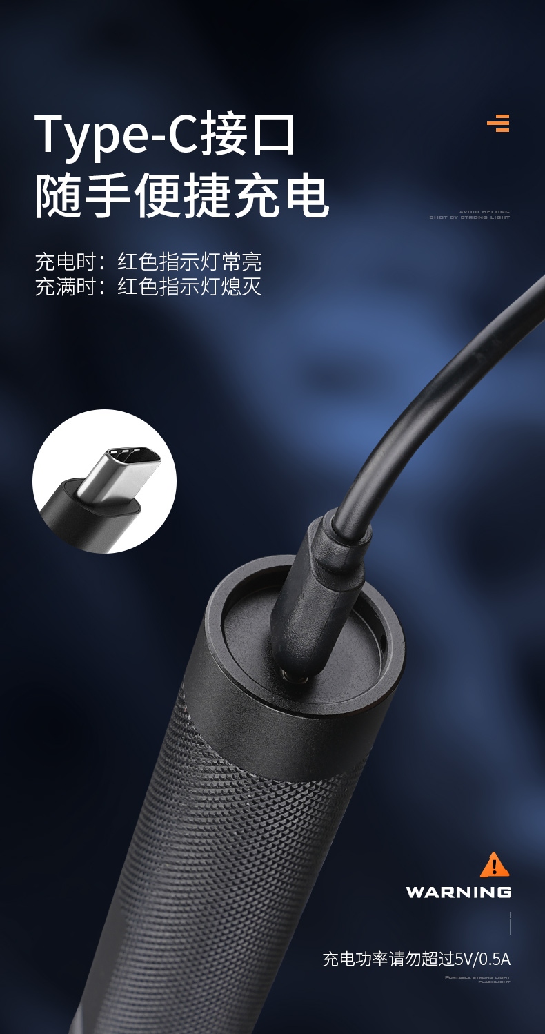 四档调光 Type-C充电 电量显示 铝合金筒身 持久续航 强力防水