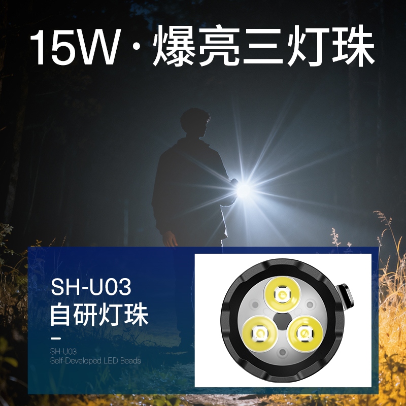 1、千米远射,射程更远,光斑更聚焦。 2、进口灯珠,亮度高,照明效果更好。 3、前后双按键,光源一键点亮,高亮瞬间开启。