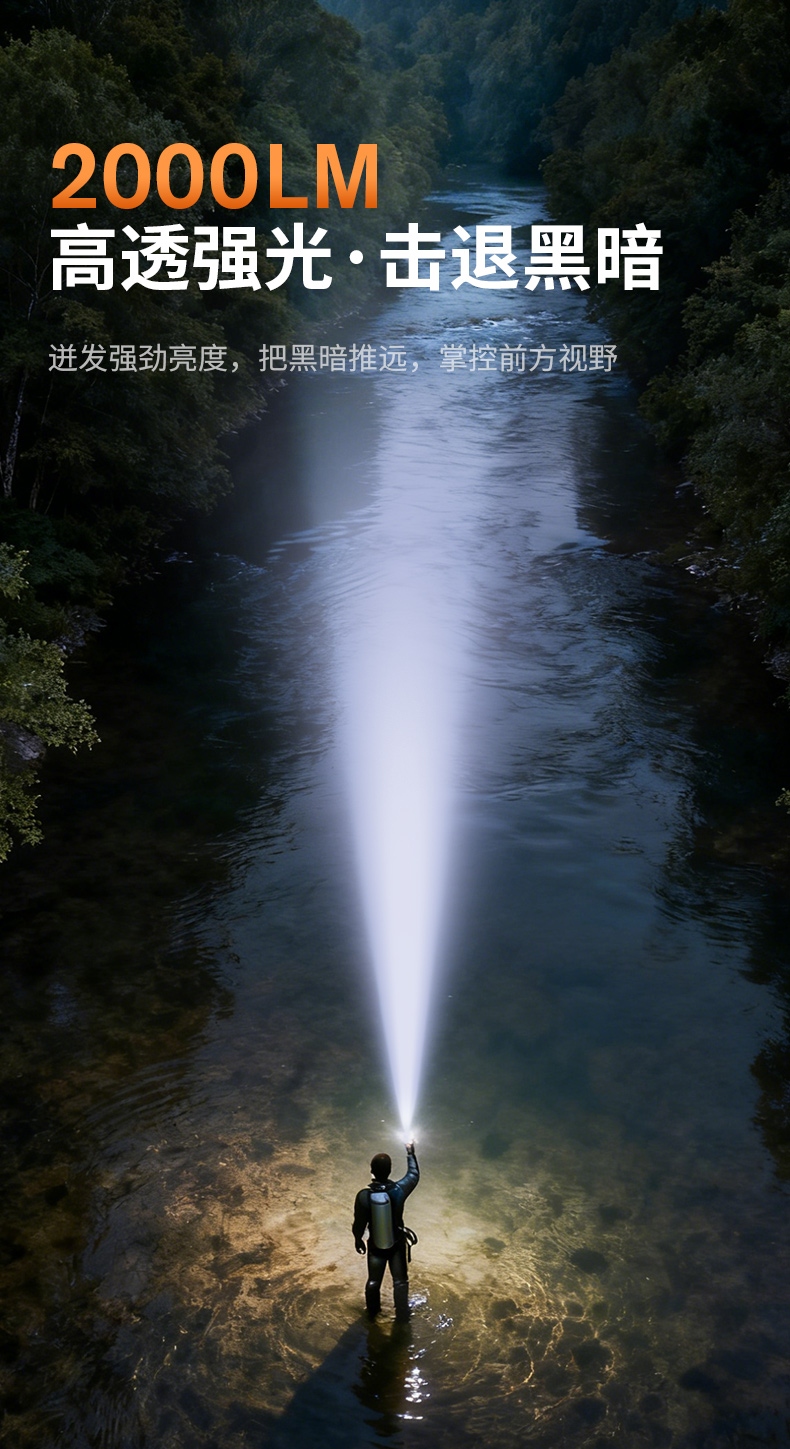 四档调光 Type-C充电 电量显示 铝合金筒身 持久续航 强力防水
