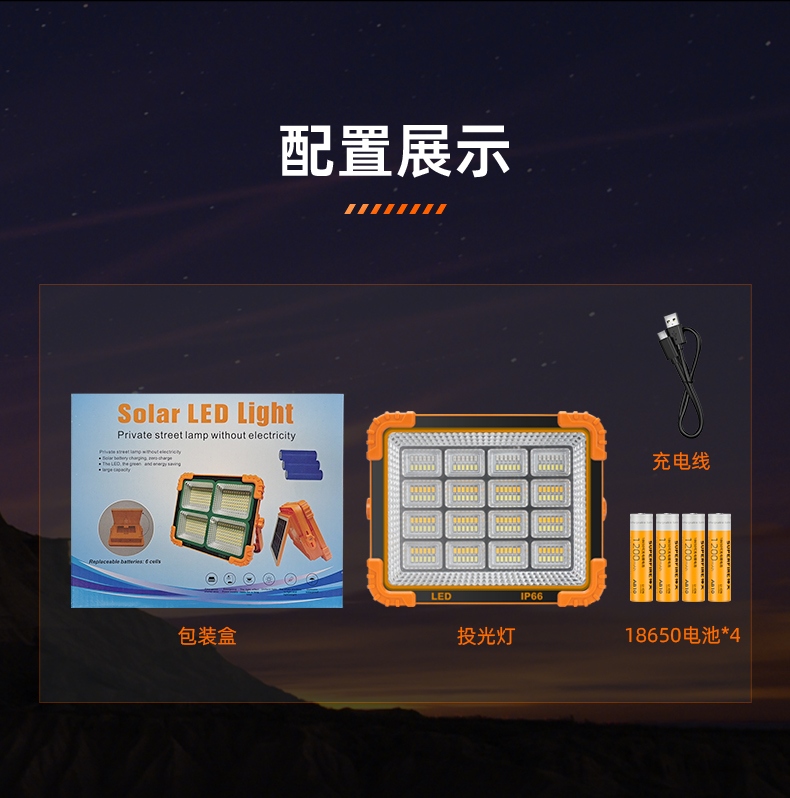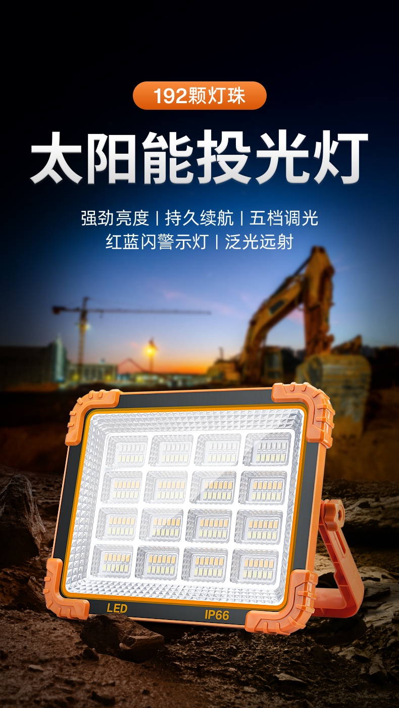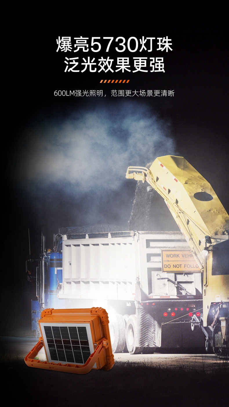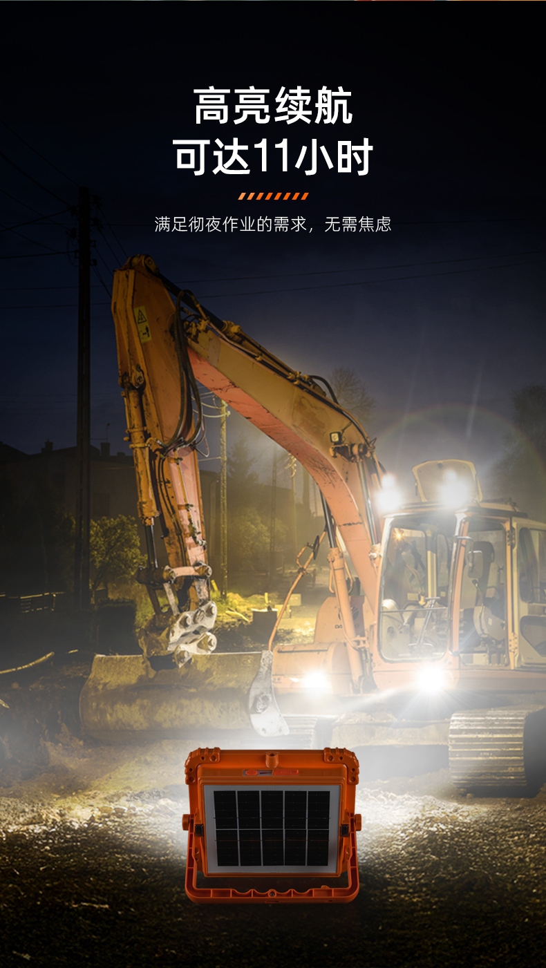 1、多档调光,可满足不同使用场景下的照明需求; 2、含提手,握感更舒适。携带更简单; 3、新型高亮远射灯珠,60W大功率,亮度高,照明效果好。