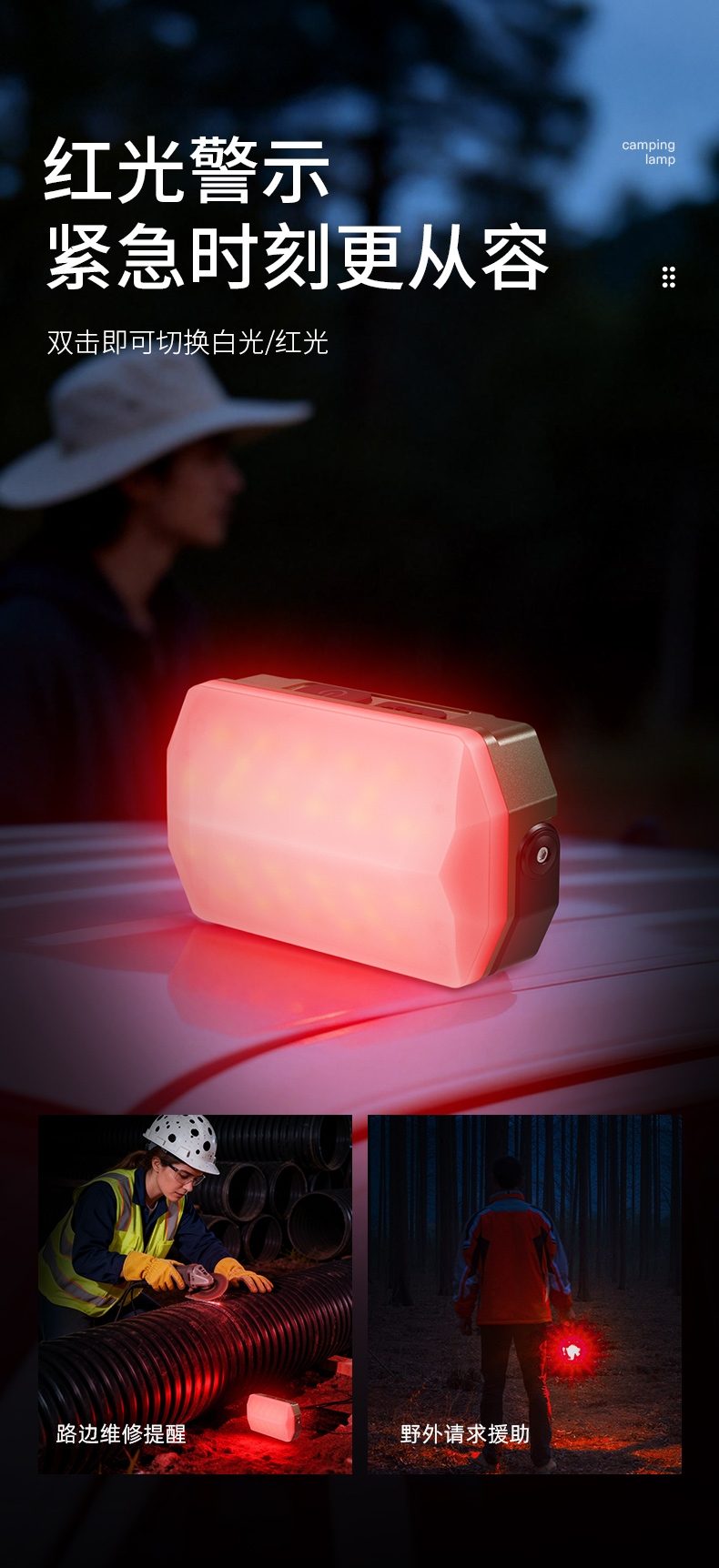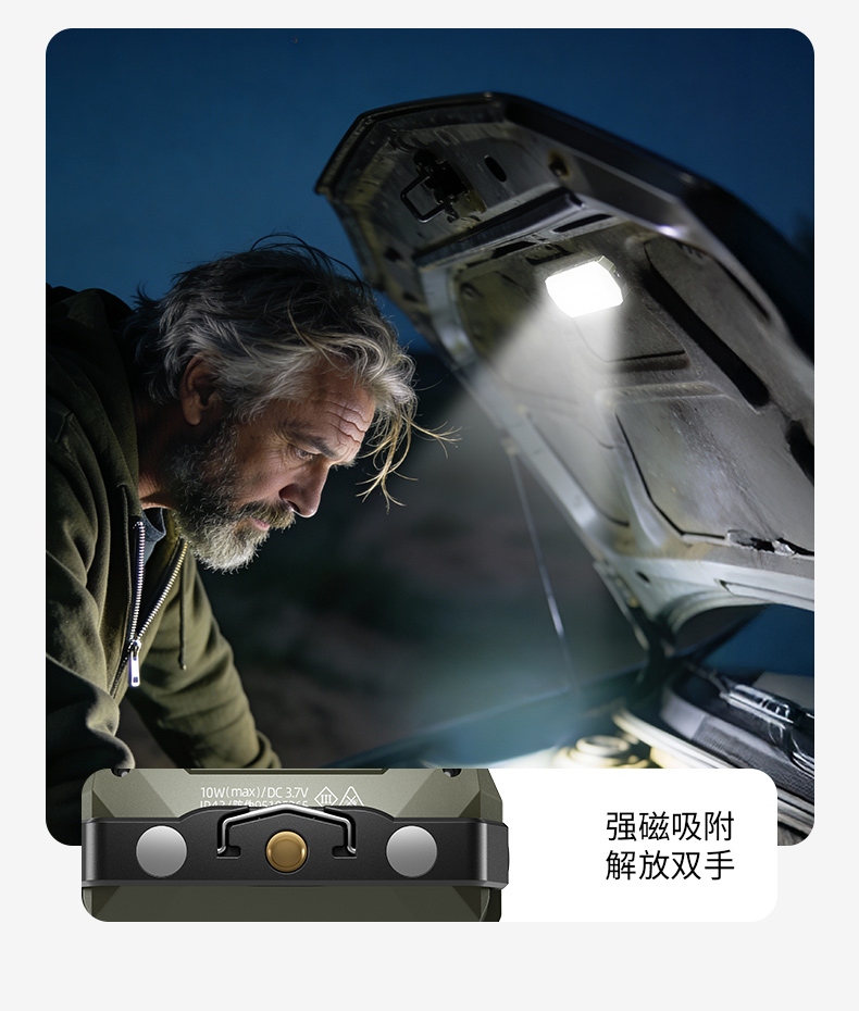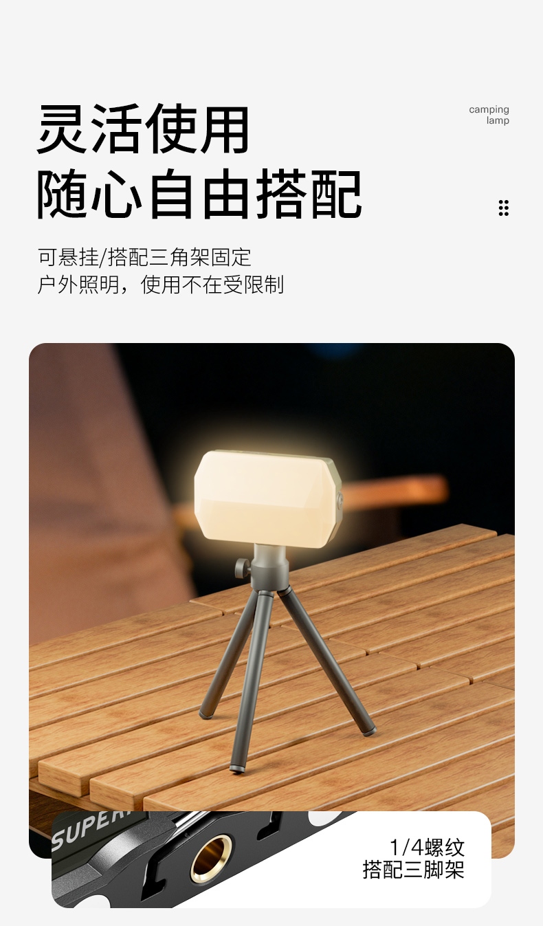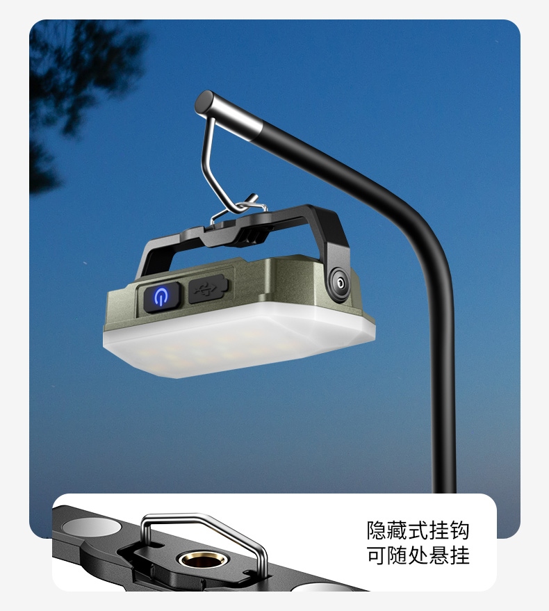 4、多功能营地灯,此灯带有磁吸、螺母孔、挂钩、支架等功能。