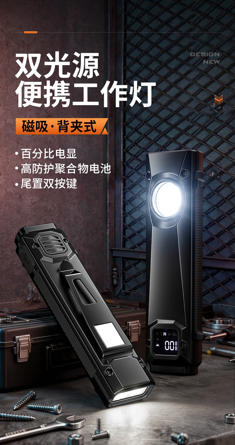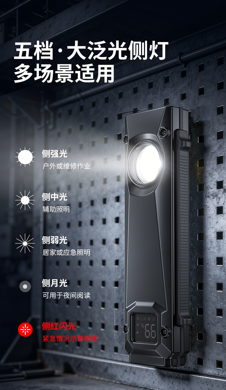1、自动记忆:此款工作灯有记忆功能,自动记忆上次关闭前的光源及档位 ; 2、设有数字电量显示,智能数显(00-100%),充电时闪烁,充满常亮; 3、多重安全使用程序:设有防过充、防过放、低压提醒、等多重程序,使用安全。