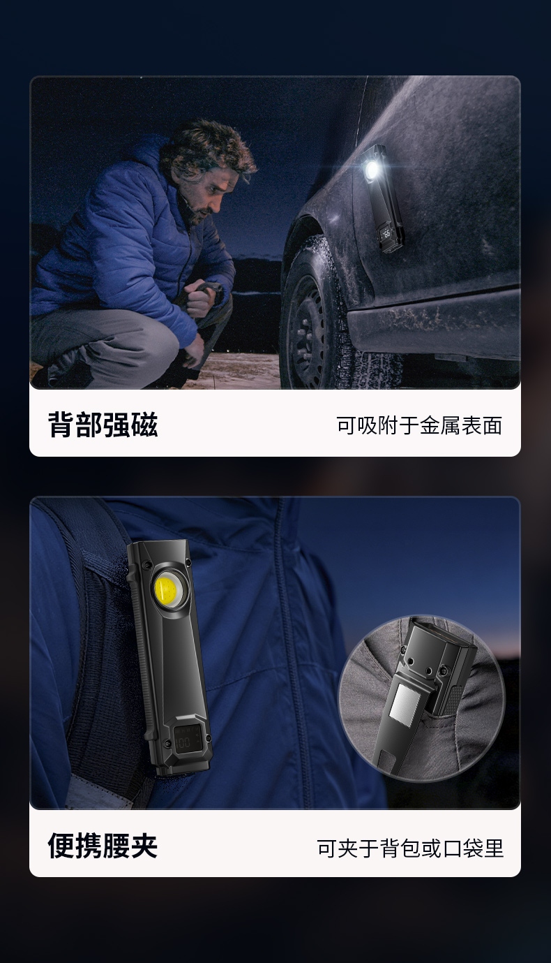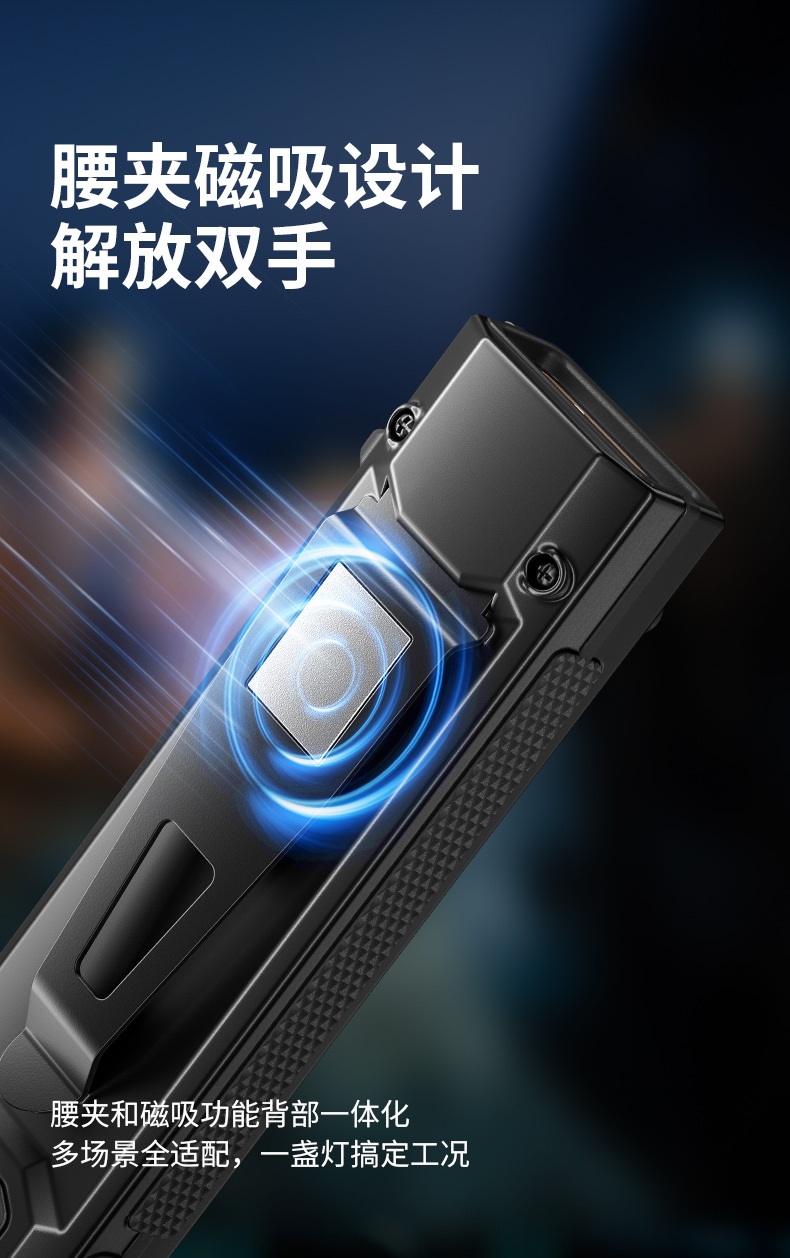 6、设有腰夹、强磁、使用相当方便。