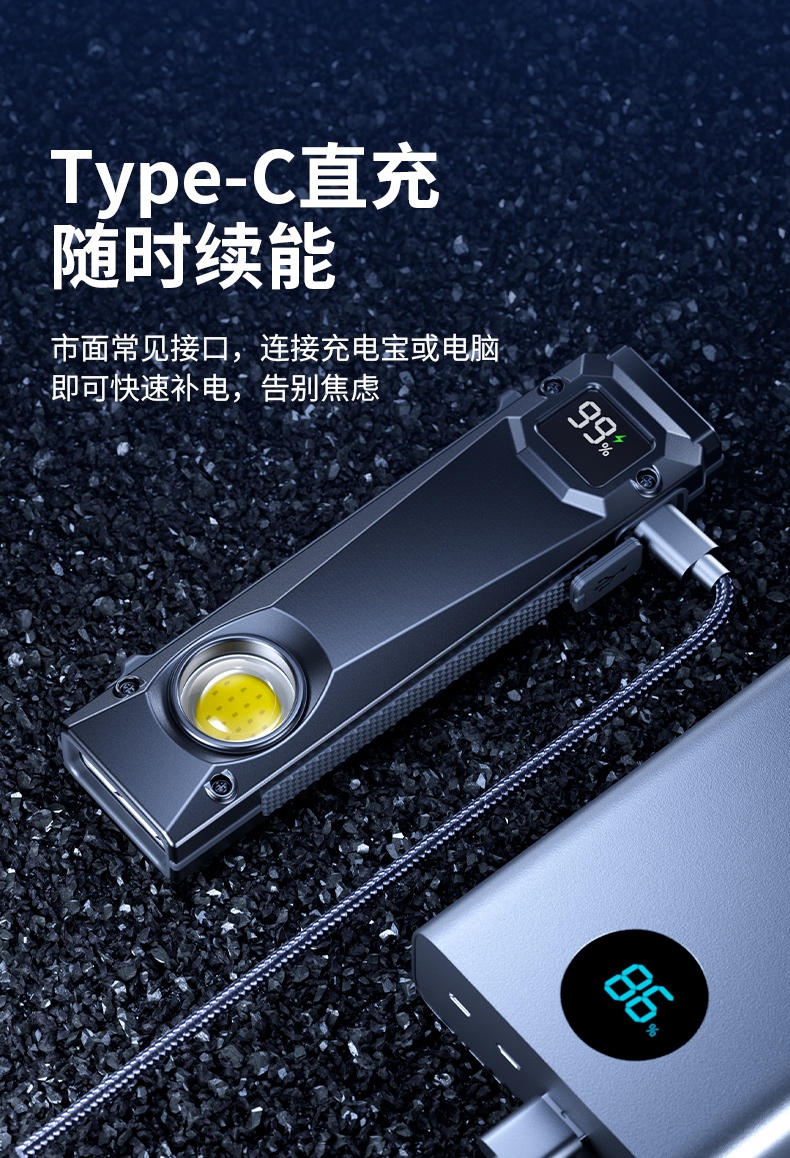 四档调光 Type-C充电 电量显示 铝合金筒身 持久续航 强力防水