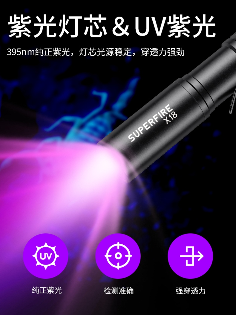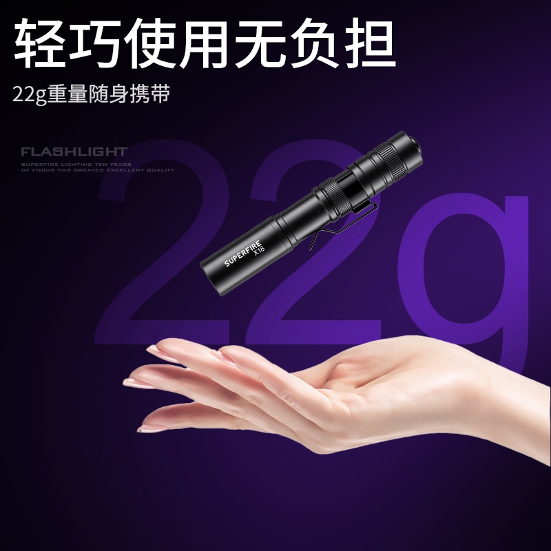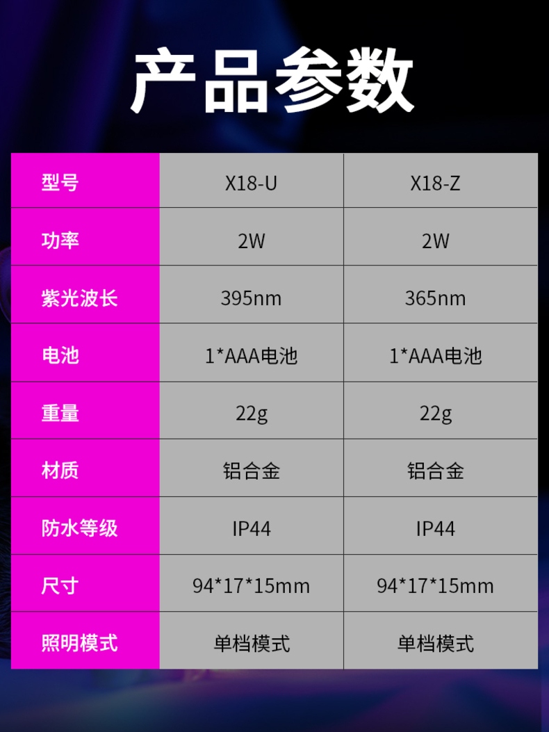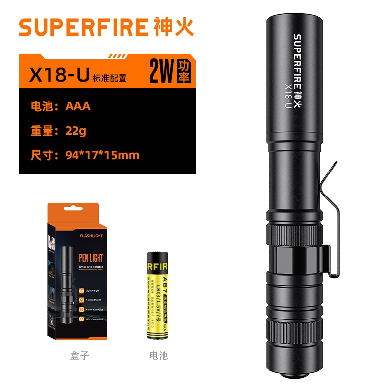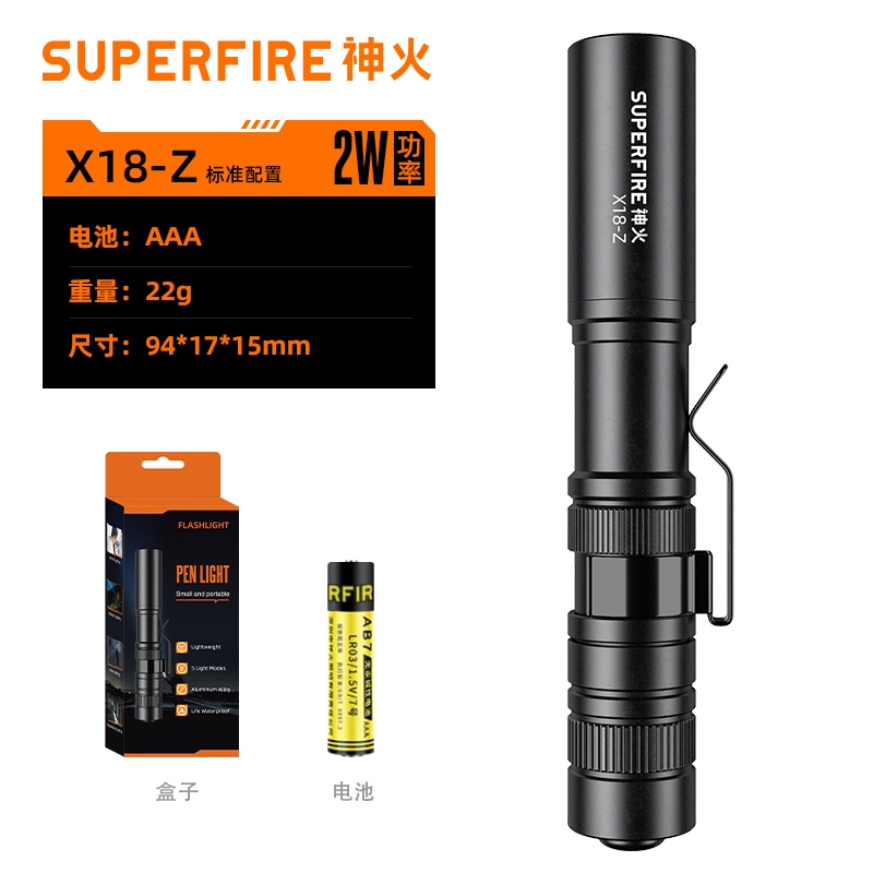 1、轻巧便携,外出携带更方便。 2、配AAA干电池,可随时替换,续航更长久。 3、铝合金筒身,防摔抗击。