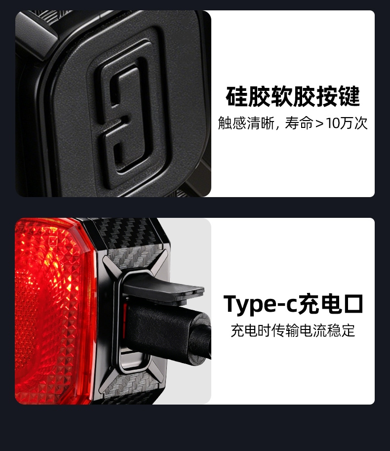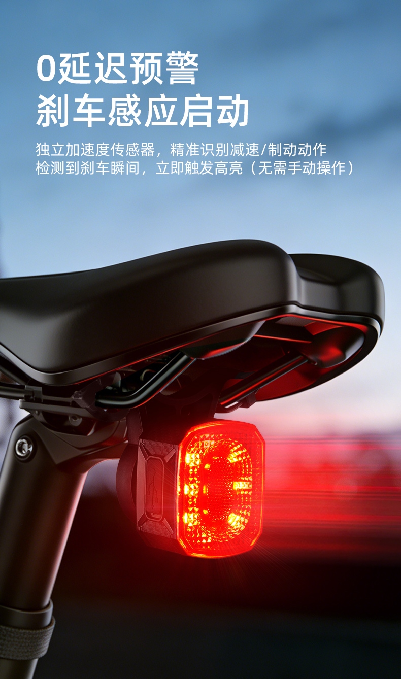 4、刹车感应:刹车感应会随灯具开启自动启动,灯具关闭时也随之关闭;