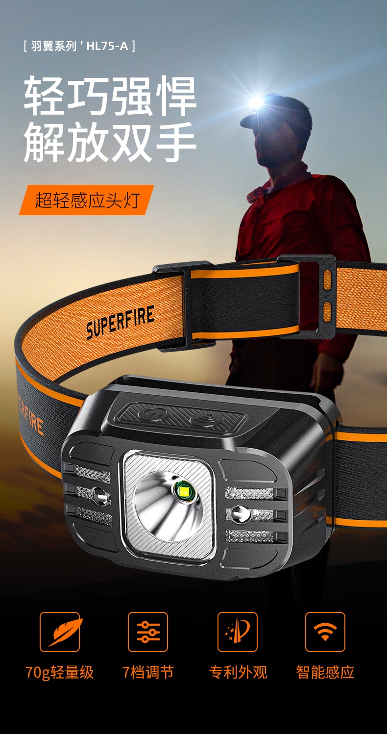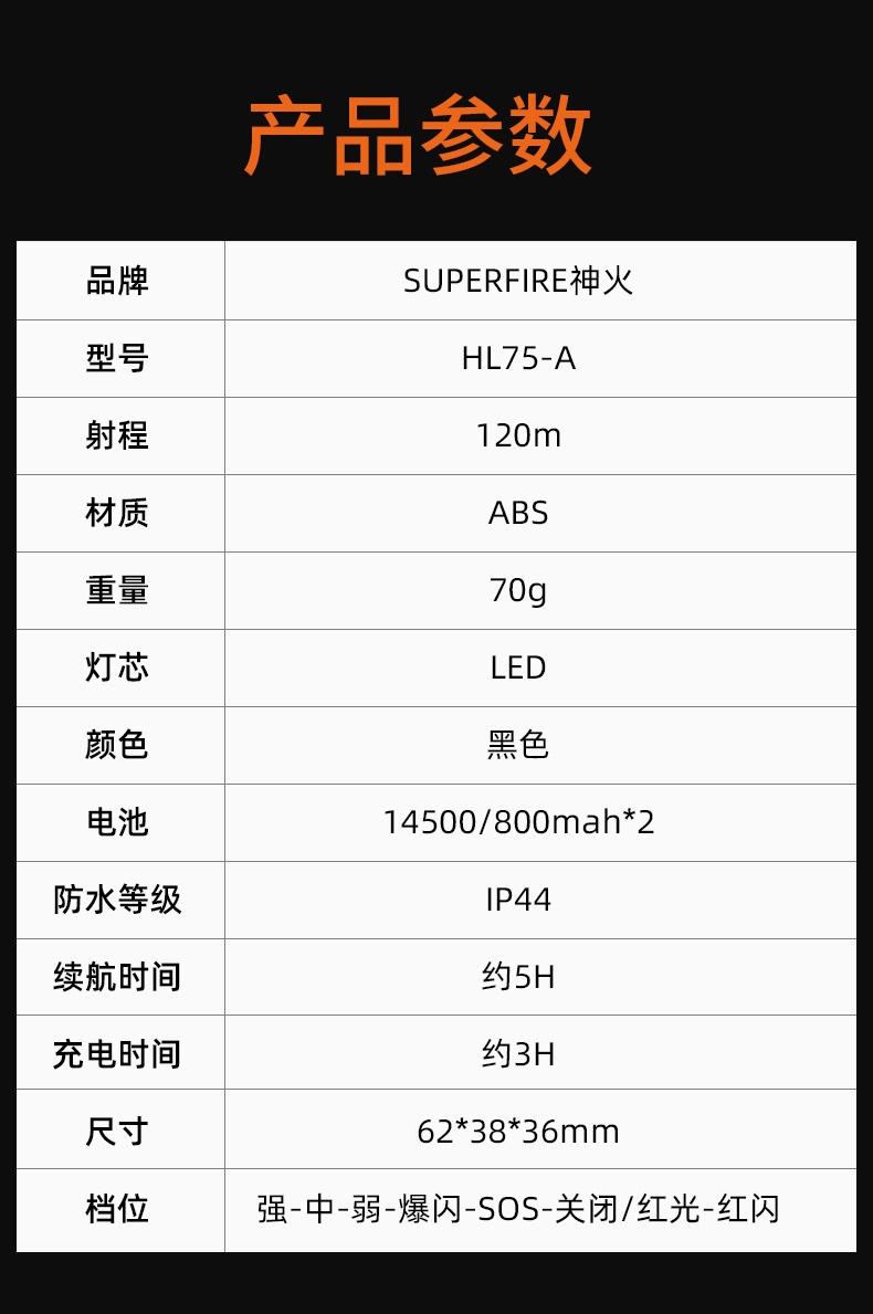 强光亮度,运动头灯,前后均衡设计,轻便不压头,可调节式头灯带,佩戴方便舒适,伸缩调焦,光照范围大,照射距离远,头灯角度调节,超90度角度随意调节,适宜各种环境使用