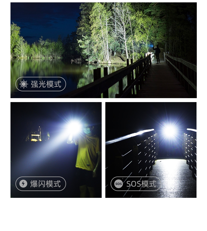 1、千米远射,射程更远,光斑更聚焦。 2、进口灯珠,亮度高,照明效果更好。 3、前后双按键,光源一键点亮,高亮瞬间开启。